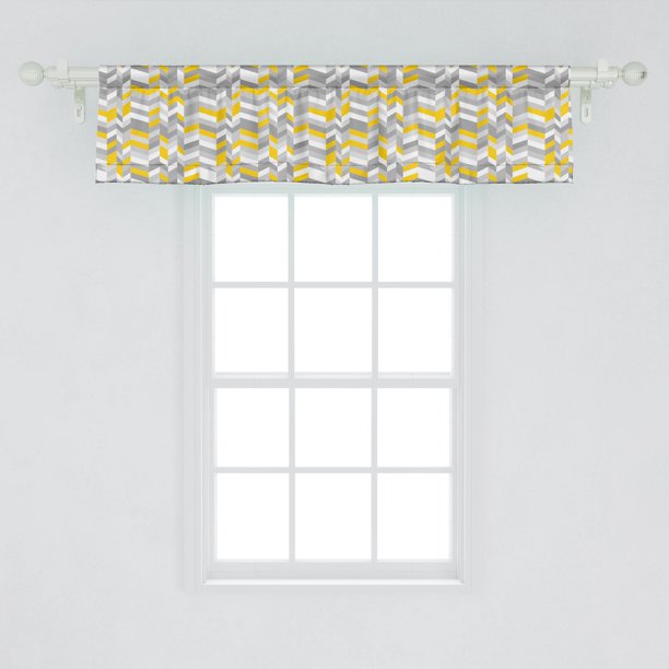 Ambesonne Grey And Yellow Window Valance Geometric Vintage 60s Home Pattern Inspired Herringbone Zig Zag Lines Curtain Valance For Kitchen Bedroom Decor With Rod Pocket 54 X 12 Grey Yellow Walmart Com